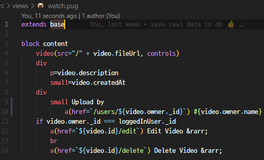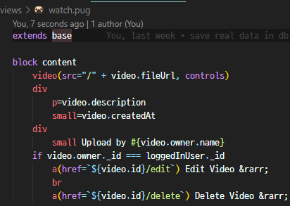 - 그리고 postUpload에서 Video를 생성할 때 로그인된 사용자의 id를 owner에 넣었다는 것을 기억해야 함