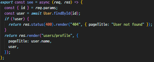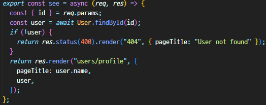 - userController에서 우리는 user를 찾고 있음