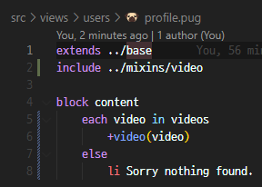 - home 템플릿에서 다뤘던 내용이고, 차이점은 profile 템플릿의 videos가 특정 유저의 id와 owner id가 같은 영상만 가져옴