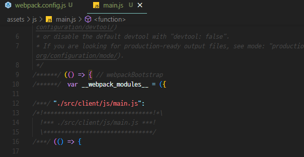 - base.pug이 main.js를 처리하며 생산된 결과물을 불러오고 있음