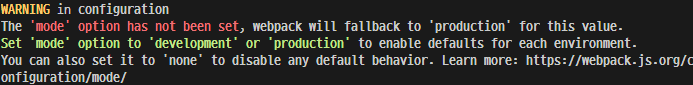 - 하지만 여전이 mode 옵션이 설정이 안되었다며 경고 발생