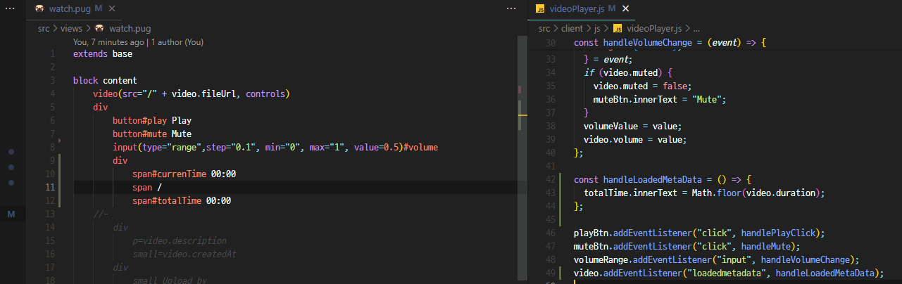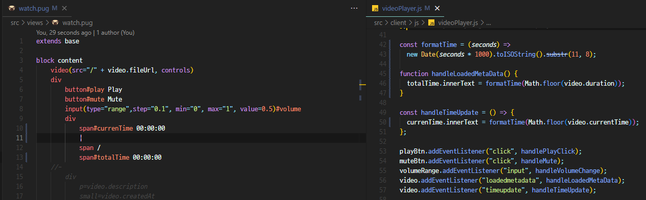 - 하지만 총시간에 video.duration을 넣는 이유는 이 함수가 호출해서 비디오의 길이를 알 수 있기 때문