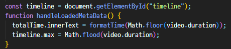 - handleLoadedMetaData가 영상의 길이를 알고 있으므로 이걸 이용해 max값을 찾아냄