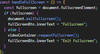 - 우선은 전체화면이 된 상태에서 전체화면 버튼을 누르면 기존의 화면으로 돌아가는 기능 먼저 구현
