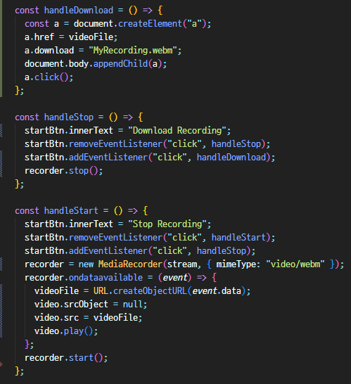 - handleStart에 있는 videoFile이 handleDownload에서도 가능해야 함
