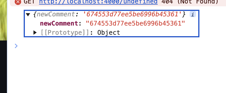 - 하지만 페이지가 새로고침이 된것이 아니고 방금 댓글을 작성하고 그 댓글을 삭제하려고 하면 에러가 발생함