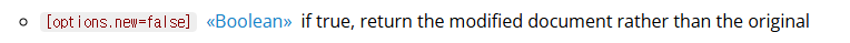 A.findByIdAndUpdate(id, update, options)에서 옵션에 new 파라미터를 넣어 변경된 문서를 가져와야 한다.